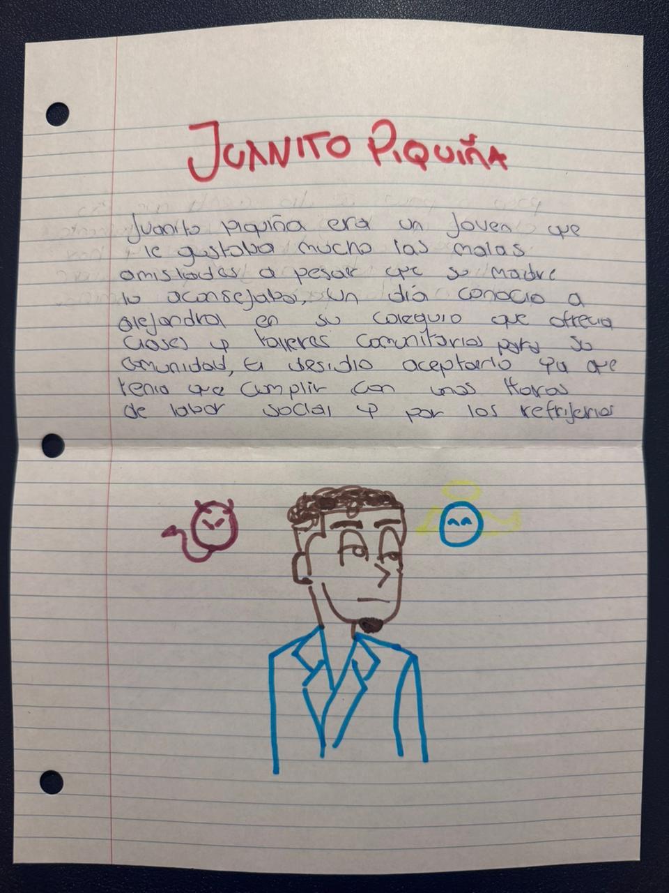 Juanito Piquiña was a young man who liked to hang out with the wrong crowd, and despite his mother’s advice, he never listened to her. One day, he met Alejandra at school. She said she was part of a project called VMC that offered classes and community workshops on leadership and healthy cities. He decided to join because he had to complete a few hours of community service to graduate, and the course counted towards that. Plus, he really liked the snacks they gave out.